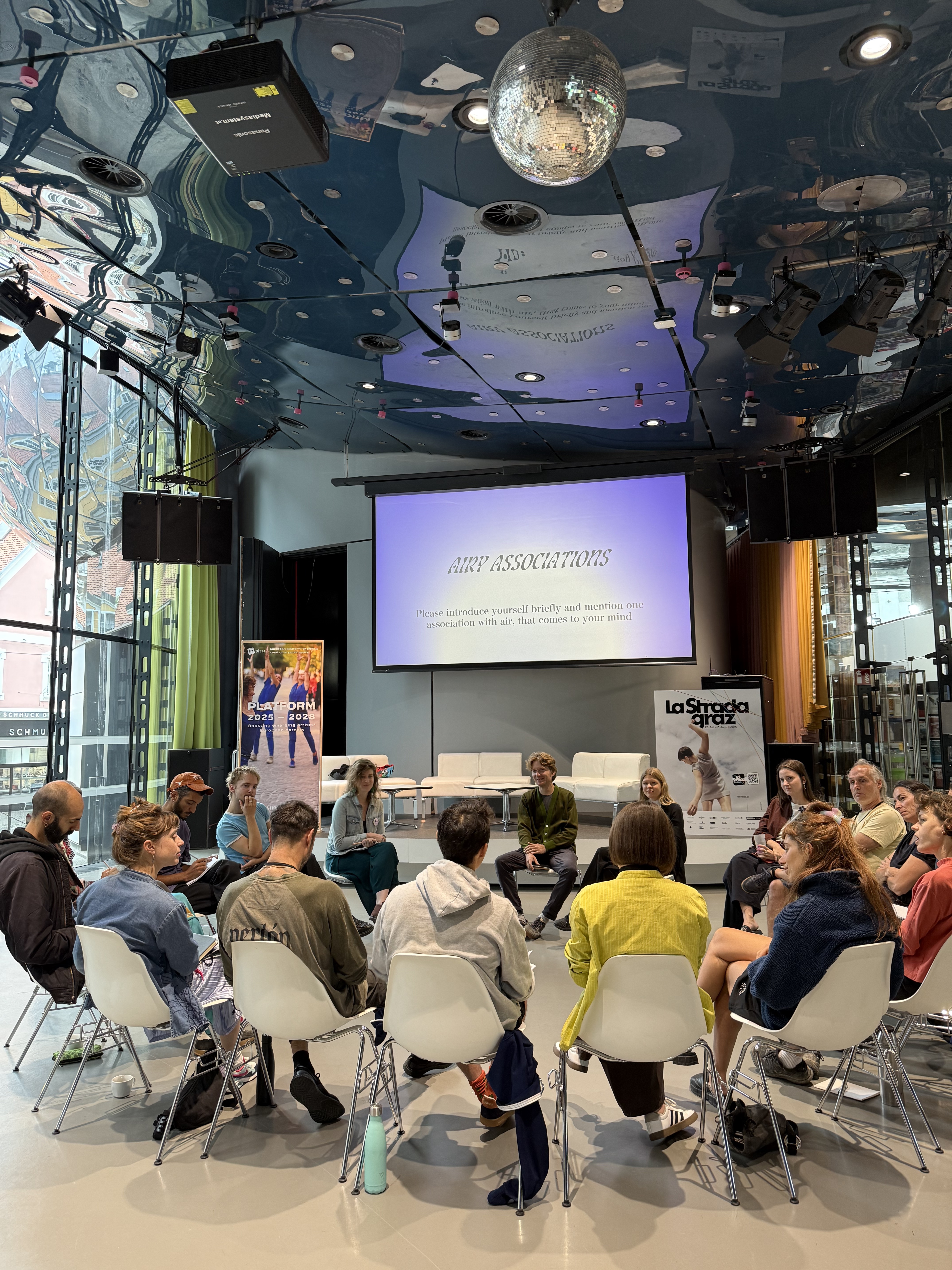 In February 2025, 27 international programmers from IN SITU met in Prague to select emerging artists creating or willing to create with public spaces and unconventional venues. Following a European open call, out of 550 applications, 51 promising projects from 27 countries were selected. These European talents are supported through an online preparation and training programme and will be meeting IN SITU partners via 5 in-person immersive labs in France, Italy, Austria, and Denmark.